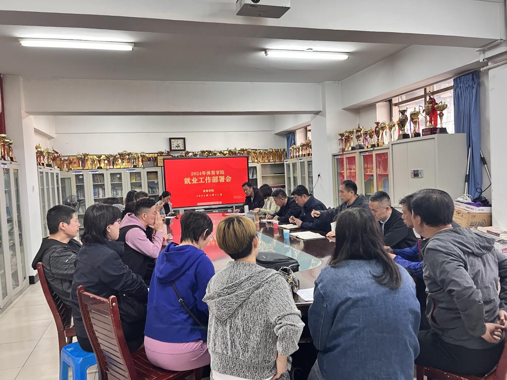 会议由体育学院党委副书记贾鹏主持。贾书记对2024届毕业生就业促进工作进行了具体部署,明确了分工,划分了责任,并要求按照时间节点稳步推进就业工作。他强调,要采用多种形式引导学生树立正确的就业观,先就业,再择业;全体责任人要齐心协力,通力合作,促进学院就业率进一步提升。