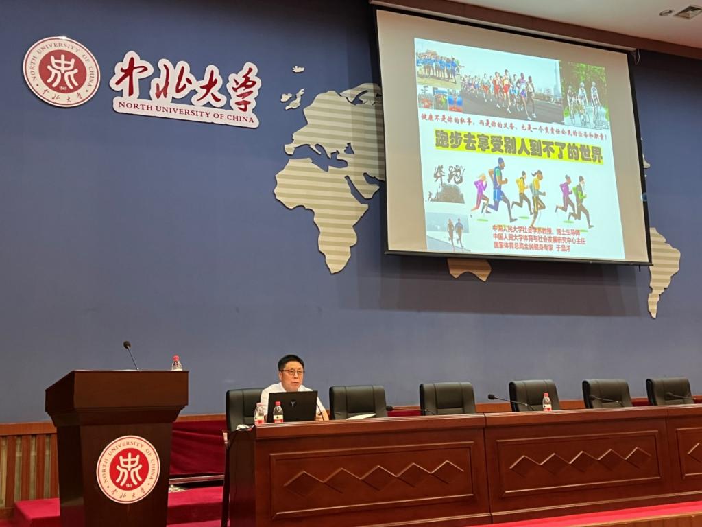 5月22日下午,体育学院邀请国家体育总局全民健身专家、民政部中国社会组织促进会专家委员会专家、中国人民大学体育与社会发展研究中心主任于海洋教授做客中北大讲堂,在我校图书馆五层学术报告厅开展以《相信体育的力量——体育的社会价值分析》为主题的学术讲座。本次讲座由体育学院院长吴剑主持,学校200余名师生参加讲座。