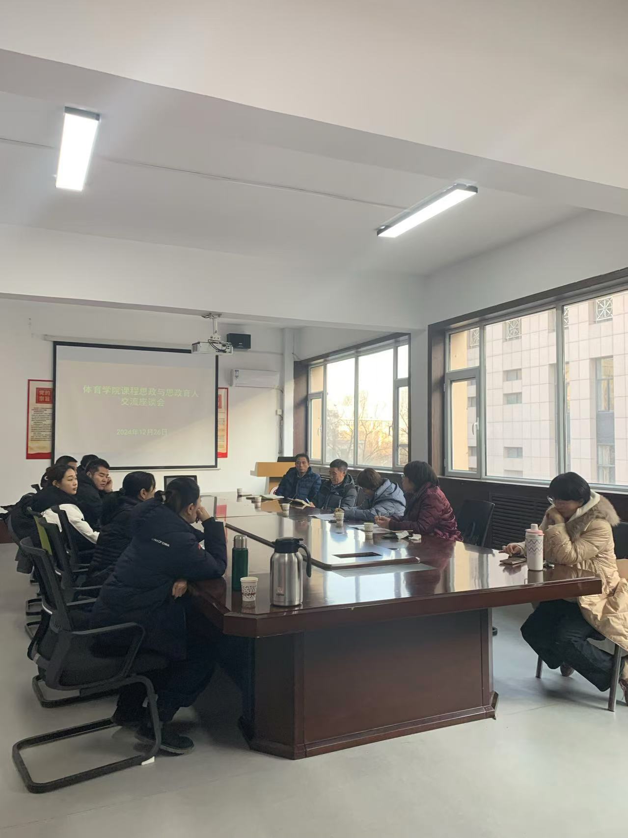 12月26日下午,我院邀请到了马克思主义学院的张春秀和班惠英老师,与我院教师就课程思政建设工作进行交流座谈。座谈会由贾谊副院长主持。体育学院院长吴剑、副书记贾鹏,以及学院骨干教师、青年教师代表等,参加了座谈。吴院长首先强调了课程思政建设工作的重要性,他指出,要借助课程思政将立德树人根本任务落到实处,并希望体育学院在2025年的课程思政建设工作中能有所突破。随后,张春秀老师和班惠英老师,分别就课程思政工作如何定位、进行课程思政建设的方法问题以及如何提炼体育学科课程思政内涵等问题,与参会老师进行了深入交流。大家一致认为,体育课程思政建设,在弘扬中华传统文化精神方面具有先天优势,相信通过加强体育课程思政建设,能够产出丰富的教学成果,也希望今后,体育教师与马克思主义学院教师一道为开发体育课程思政资源共同努力。