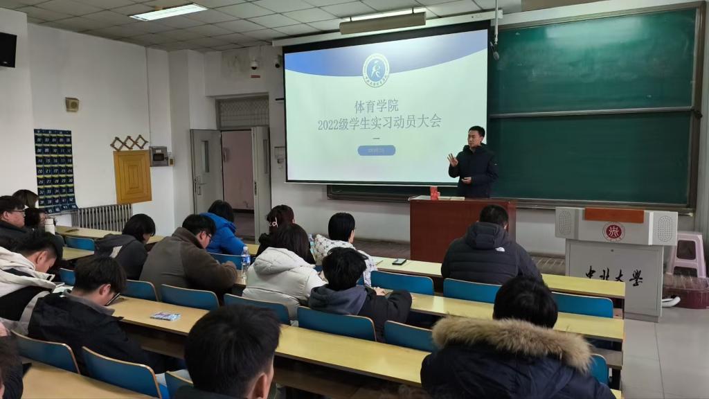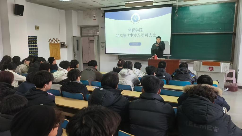 2月18日下午,体育学院2022级学生实习动员大会在11312H教室召开。体育学院院长吴剑、副院长贾谊及全体实习工作教师参会。