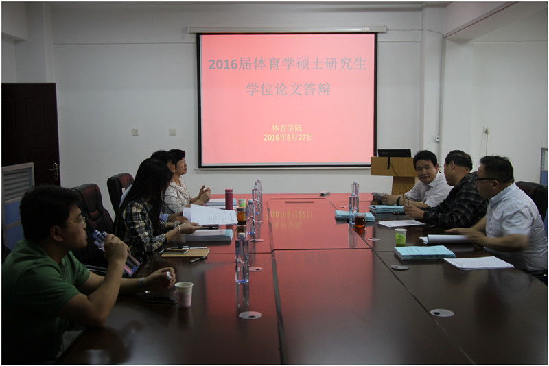 2016年5月27日,我院2016届硕士研究生生论文答辩工作在院六层研究生教室及标本实验室紧锣密鼓地展开,本次答辩主席及委员邀请到了河南大学洪浩教授(博导)、山西大学体育学院刘生杰教授、太原师范学院体育系张龙教授、山西省体育科学研究所兰江研究员以及学院的曹电康教授、刘定一教授、王琳教授等的参加。今年参加答辩的共22名毕业生,出席答辩现场的除了硕士生导师外,还有其它老师、研一、研二同学的广泛积极参与。