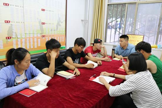 接下来,学生科王华慧老师和党员小组成员在学生会办公室一起深入讨论“两学一做”再学习。
