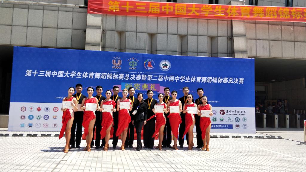本赛事是全国大(中)学生体育舞蹈领域规格最高、规模最大的一项赛事。来自全国各地84所学校的1200名选手参与本次决赛。我校代表队参加了此次比赛。由周华、苏转平两位老师担任教练员,自去年4月份开始强化训练,10月份参加了第十三届中国大学生体育舞蹈锦标赛(北部赛区)的比赛,获得可喜成绩,并晋级参加全国总决赛。