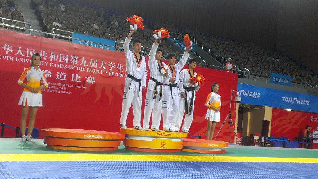 第九届全国大学生运动会于九月十八日在天津落下帷幕,我校运动员刘璐在9月15日的跆拳道男子84kg级比赛中不畏强手奋力拼搏获得金牌;在随后的比赛中王超和张丰铄获得两银,女将董洁夺得一枚铜牌。